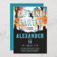 Get ready for a thrilling day of high-flying fun amidst the trees! This nature-inspired birthday invitation features vibrant yellow, turquoise, and orange hues, capturing the beauty of the great outdoors. Bold fonts stand out against a sleek black background, while customisable text lets you personalise the details for your special celebration. Available in both print and digital download formats, each invitation is designed to set the stage for an unforgettable woodland adventure. The reverse side showcases a turquoise backdrop, hinting at the exciting outdoor journey ahead.