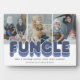 Funny uncle photo plaque featuring 3 family pictures for you to replace with your own memories, the saying "funcle", and the kids names.