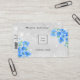 A faux silver looking background, with sparkles and blue forget-me-not florals as decor. Personalise and add your business logo and a text on front. White letters