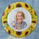 Honor your loved one with a custom photo memorial funeral button. This funeral button features elegant sunflowers , with your custom photo.