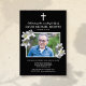 Make honouring a loved one's memory seamless and special with our Funeral Remembrance Invitation. This elegant design features a sophisticated black background, a section for a cherished photo, a solemn cross, and stunningly detailed white lily flowers. Our easy-to-personalise celebration of life template makes every detail feel even more heartfelt and unique.