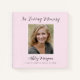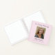 Personalise "In Loving Memory" funeral sign in notebook with Black Script Name, Dates and Photo on Pale Pink background. Extra text on back or delete.