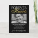 Minimalist funeral program featuring a stylish black background that can be changed to any colour, a picture of your lost loved one, the text "forever in our hearts", the funeral details, an obituary, order of service, the details of the wake, another photo on the back page, and a personalised thank you note.