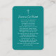 This simple funeral memorial card can be given as a keepsake at a Celebration of Life or funeral service or sent as a special tribute to those who were unable to attend. Personalise this card with a favourite photo of your dearly departed, details and your choice of prayer or poem on the back of the card. Design features elegant script font on a stylish teal background that can be changed to any colour of your choice. Easy to customise photo, text and background colour of card.