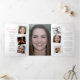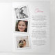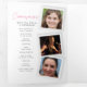 Funeral program order of service double-sided instant snap shot style photo and full page photos white, pink funeral program. Replace the sample text and nine placeholder photos with your own special photographs, memorial order of service, obituary, reading or poem, and acknowledgements, and other personal information details as required. Design by Sarah Trett for www.mylittleeden.com (the photos are just placeholder images for you to replace with your own special photos).