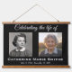 Create a bold memorial for display at any wake, funeral, celebration of life, or other memorial event. It offers space for a younger image as well as a more current image so the deceased can be seen in various walks of life. You can personalize all aspects of the design to suit your occasion.