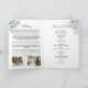 Funeral memorial program featuring on the front a photo of the deceased, thier name, dates, the memorial venue, date of the event, and elegant gold frame with watercolor winter wildflowers. On the inside is an obituary, and order of service; and on the back another photo, a thank you note and the second venue for after the funeral. For further customisation, please click the "customise further" link and use our design tool to modify this template. If you need help or matching items, please contact me.