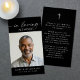 Keep the memory of a loved one close with this custom color personalized prayer card featuring one treasured photo, the sentiment IN LOVING MEMORY, name and dates on the front and an editable heartfelt remembrance message accented with a simple cross on the back. With its simple yet elegant classic black and white design and elegant script typography, it makes a meaningful keepsake to share at a funeral, memorial service or Celebration of Life and offers comfort and a lasting tribute for family and friends. Its small and portable size of 3.5x2" (wallet-sized) makes it convenient for loved ones to carry it with them as a reminder of your loved one’s life and spirit. Personalization makes each card unique.