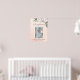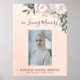 This stylish funeral floral elegant Woman welcome sign featuring lush bouquet blush pink Roses and rustic flowers, a photo of your loved one in white frame, their name and dates of life and text in loving memory on peach pink gradient background.