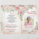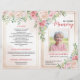 Pink roses funeral service program is printed on high-quality paper. All the content of the program design (text and images) can be personalised to match your needs. You can add, edit or delete content using the online editor before ordering.