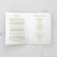 Celebration of life program featuring on the front cover a photo of the person of your loved one, dates, the memorial venue, date of the event, and elegant green watercolor foliage. On the inside is an obituary, and order of service; and on the back a thank you note and the second venue for after the funeral.