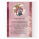 Very nicely done exactly what it looks like doesn't need a frame to stand it up and right size without overbearing the items on the table. Exactly like the picture turn out very clear and sharp