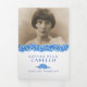 Funeral program order of service gatefold floral forget-me-not flowers art funeral program in white, blue, with touches of yellow and green on white paper. Simply replace the sample text and photo holders with your own special photos and information details. Original inked drawing and watercolor artwork and design by Sarah Trett for www.mylittleeden.com (photos are just placeholder images for you to replace with your own).