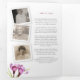Funeral program order of service double-sided floral purple spring crocus floral botanical watercolor art funeral program. Replace the sample text and nine placeholder photos with your own special photographs, memorial order of service, obituary, reading or poem, and acknowledgements, and other personal information details as required. Original hand watercolor crocus flower painting and design by Sarah Trett for www.mylittleeden.com (the photos are just placeholder images for you to replace with your own special photos).