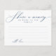 This is the modern romantic script, Funeral Service, Share a memory or word to the family, sympathy, memorial service card, in classy navy blue themed.