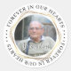 Funeral Sympathy Photo Memorial Sticker. Sticker with a photo of the person being remembered, the sympathetic title "Forever in our Hearts", their name, and dates of birth/death. This memorial sticker can be used for Life Day Celebration, Memorial Day, and funerals, or sent as a sticker on an envelope or placed on a gift for a family member or friend.