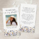 Keep the memory of a loved one close with this personalized prayer card featuring a cherished photo of them framed in faux metallic gold foil, the sentiment FOREVER IN OUR HEARTS, name and dates accented with pretty watercolor wildflowers on the front and an editable heartfelt message on the back. With its simple yet elegant classic design and modern script typography, it makes a meaningful keepsake to share at a funeral, memorial service or Celebration of Life and offers comfort and a lasting tribute for family and friends. Its small and portable size of 3.5x2" (wallet-sized) makes it convenient for loved ones to carry it with them as a reminder of your loved one’s life and spirit. Personalization makes each card unique.