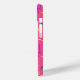 Make your phone stand out with this funky 80s Memphis style phone case!. This design features blue, purple, white, yellow, and black squiggles, triangles, diamonds, and circles on a bold pink background.