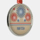 Hip and trendy Funky Fourth of July Fireworks and Stripes Premium Round Ornament featuring red, white, and blue firework graphics and stripes. This charming ornament is a wonderful way to show off your patriotic side and makes a lovely keepsake gift of holiday decoration! Customise with your own text! Click on the "Customise It" button to change/remove text or change fonts and text colours.