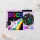 Funky disco themed birthday party invitation suitable for any person. Back to the 80's themed birthday. Great fashionable funky dancing theme for birthday parties. Printed images of a black and lilac/lavender swirls background, The word DISCO in multicolours, a multi colored suspended disco ball, groovy rainbow with white lights and a group of people dancing take the front of this invite, the reverse has the same backgrounds and a silhouette image of people dancing. All text, font and font color is fully customizable to meet your requirements. If you would like help to customize your product please contact me through my store and i will be very happy to help you.