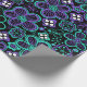 Funky 90s Glow Floral Pattern Black Green Purple Wrapping Paper
