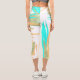 Funky Abstract Art Pastel Turquoise White Capri Leggings