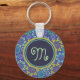 Funky Abstract Blue Floral Pattern Monogram Key Ring