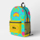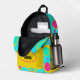 This stylish backpack showcases a lively abstract pattern of turquoise, yellow, pink, and green, creating a dynamic and eye-catching design that stands out from the crowd. Whether you're heading to class, the office, or a spontaneous day trip, the vibrant Abstract Backpack is your perfect companion, adding a splash of colour and a touch of artistic flair to your journey. To make this backpack even more special, the name on the front pocket is customisable, adding a personal touch to a funky backpack.