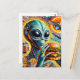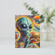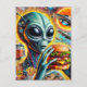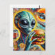 Funky Alien Eats Cheeseburger and Fries Collage Postcard