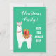 A cute design of an alpaca with a Christmas gift. Funky and modern Christmas design with turquoise and colourful Christmas vibe.