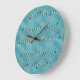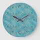 Funky Aqua Turquoise Blue Curved Lines Art Pattern Large Clock