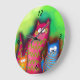 Funky Artsy Colourful Cat Wall Clock