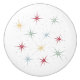 Liven up your drawers or cabinets with this fabulous atomic era starburst mid century ceramic knob. This design features starbursts in red, blue, green, and yellow and accented with black dots.
