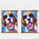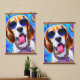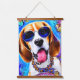 The ultimate in funky retro style, this pupper is sure to make a statement with their bold, colourful style! This playful pup is rocking a pair of oversized sunglasses with a bright pink frame, blue lenses, and purple and orange accents.
