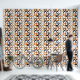 The design showcases a striking blend of taupe beige, dark brown, black, rust orange, and white in an abstract art motif. With its curved and round shapes alongside square angles, it creates a dynamic and rhythmic visual impact. The pattern is ornate and elegant, yet carries a funky and hipster essence. It caters to those seeking either a chic, modern look or a vintage, retro feel, aligning with diverse tastes and personalities. This versatile pattern adorns a range of contemporary home decor items, ideal for adding character to various spaces like master or guest bedrooms, kitchens, living areas, man caves, dorm rooms, condos, studios, or apartments.