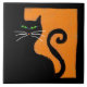 Funky Black Cat Abstract Halloween Art Ceramic Tile