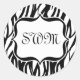 Funky Black/White Zebra Monogram Classic Round Sticker
