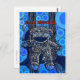 Funky Blue Sock Monkey Circles Bubbles Pop Art Postcard