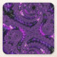 Funky Bold Boho Purple Digital Abstract Fractal Square Paper Coaster