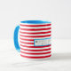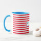 Colourful Happy And Funky Coffee Mania Mug #1 Personalised Espresso Coffee / Tea Mug / Cup to add to your home / office / business drinkware collection. A cool present / gift idea for all who love custom design unique items, positive vibes, stripes, lines, happy colours, customised things, minimalism etc. Change the background colour to suit your needs, style and taste. Stripes, red, blue, white, grey.