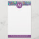 Funky Colourful Floral Pattern Custom Monogram Stationery