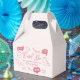 Fun favour box to give out at your graduation party featuring the text that says "thank you for celebrating with me" with hand drawn quirky doodles.