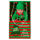 Funky festive gift bags with green and red stripes and Christmas tree design to personalise with your own photograph and text. Click customise to reposition or resize photo. Image and text repeated on reverse.