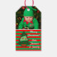 Funky festive gift tags with green and red stripes and Christmas tree design to personalise with your own photo and text. (click customise to reposition or resize your photo)