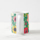 A cute floral mug with a pattern of simple colorful flowers and leaves in several colors on a green background. Whether you're looking for a gift for a friend or just want a new mug for yourself, this is the perfect choice.