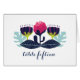 Modern and elegant Funky Floral Wedding Table Number Card with a colourful array of lush dark blue and periwinkle foliage and stylised magenta pink and purple flowers. This unique and trendy table card can be easily customised with your wedding details and table number(s). For more customisation options, click on the Customise It button.