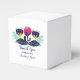 Modern and elegant Funky Floral Wedding Favour Boxes with a colourful array of lush dark blue and periwinkle foliage and stylised magenta pink and purple flowers. These chic and trendy boxes can be customised with your wedding details. For more customisation options, click on the Customise It button.