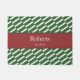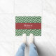 Add a touch of unique funky design to your home door decor with this custom family name doormat. This modern mat has a background pattern of green and white stripes and a red area for your family last name and the date your family was established (or text of your choice).