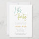 This fun wedding reception party invitation, with it's turquoise blue, avocado green, orange, and black text, will be the perfect way to invite your friends and family for a casual celebration party! Invite your friends and family for an evening of fun! This is a great idea for a reception following a couple eloping.