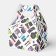 Stylish favour boxes with funky pattern of makeup essentials dotted with stars. Great favour boxes for pamper parties.